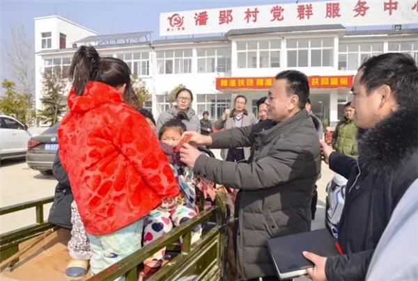 崔巨发(右二)为村民发慰问金及生活用品。