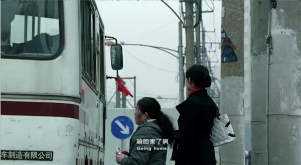 影片尾声,阜阳保姆们上了破旧的公交,准备回乡返程。一位阿姨从远处跑来,操着方言让车上的同乡捎一个用红布包着的盒子回老家。是骨灰盒。
