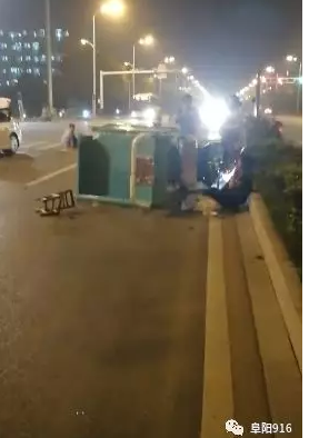 三轮车闯红灯横穿马路与轿车相撞,有人受伤-阜阳