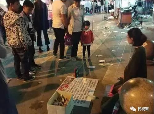 记者在西站夜市附中门口处见到该女子,这里紧邻夜市,人流量很大,不少市民驻足观看并为其捐款。