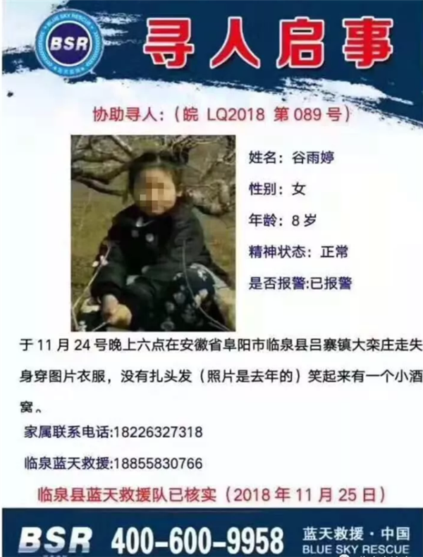 刚刚!阜阳全城寻找的8岁女孩被找到!可惜已......