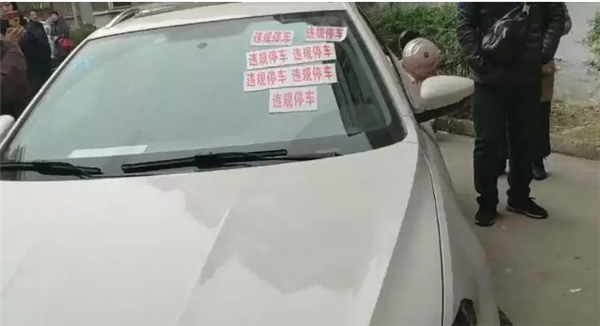 阜阳一车主乱停车,被贴多张不干胶!业主这样报警也不对…
