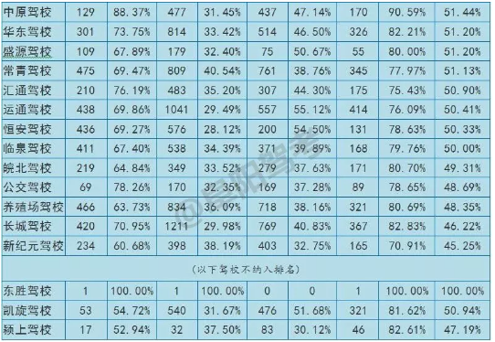 (东胜驾校已停止招生学员,不纳入排名。凯旋驾校、颍上春晖驾校暂停学员招生,不纳入本月排名。)