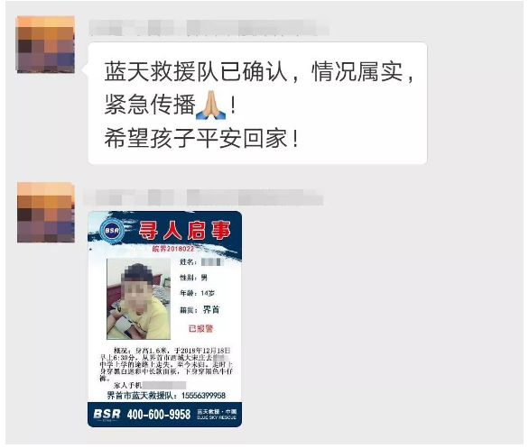 前几天很多界首人的微信朋友圈里都在转发一条寻人信息一时间引起广泛关注到底发生了何事呢?这孩子现在情况究竟如何了?事情经过12月18日晚23时许,界首市新华派出所接到辖区居民报警,其14岁的儿子失联了。
